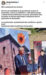 Shaip Kadriaj ka bërë publike mbështetjen e tij për kandidatin Bali Muharremaj, duke theksuar punën e mirë dhe rezultatet konkrete që ai ka arritur gjatë mandatit të tij.